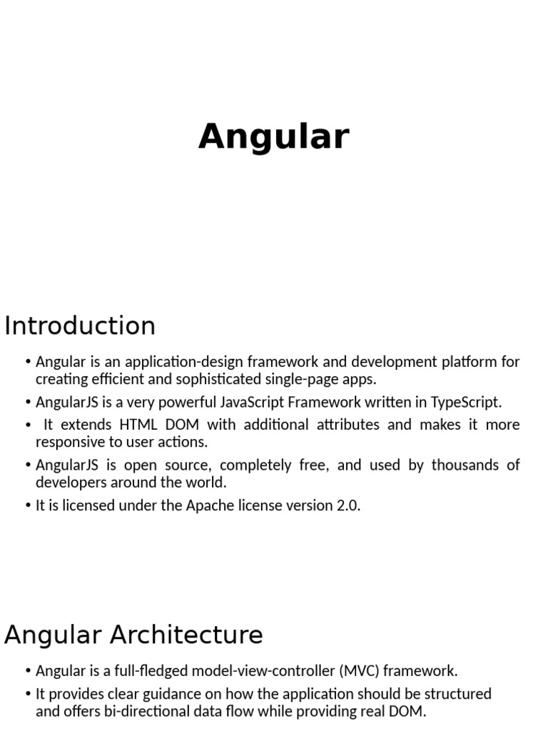 • AngularJS is a very powerful JavaScript Framework written in TypeScript.