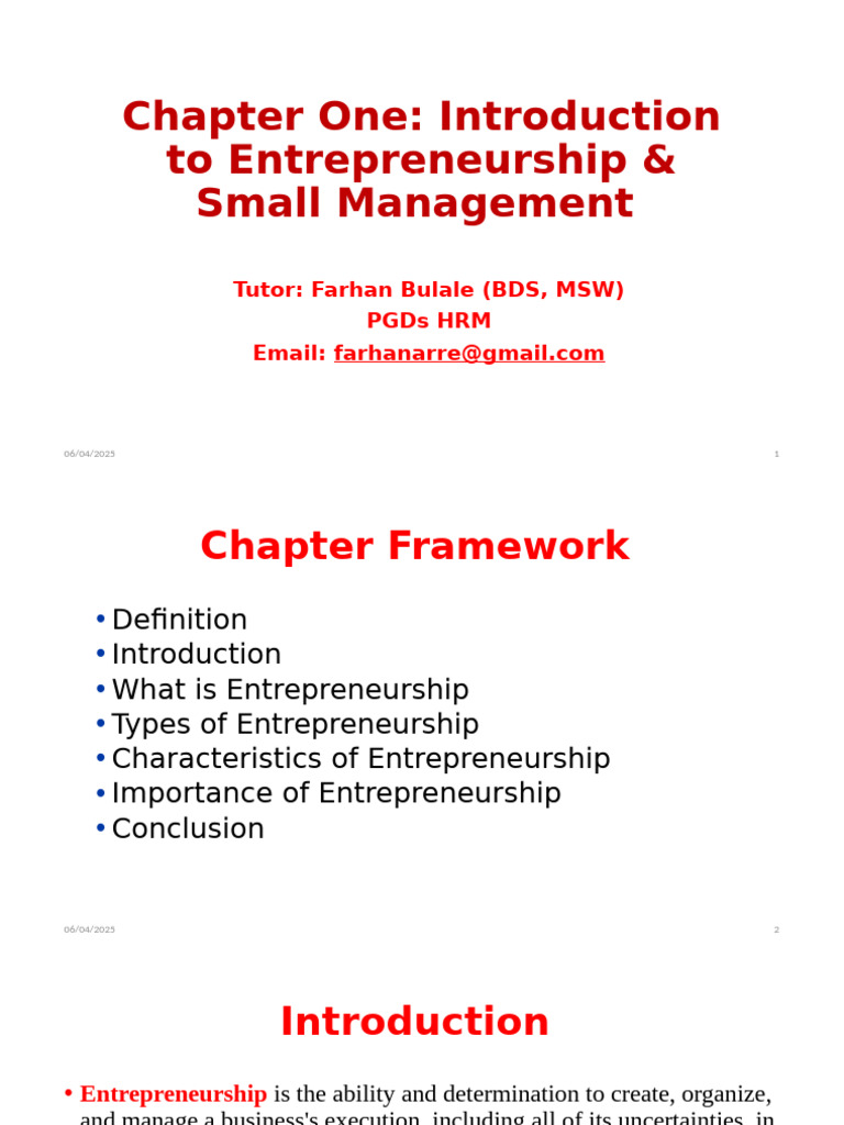 • Characteristics of Entrepreneurship