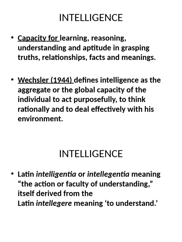 • Wechsler (1944) defines intelligence as the