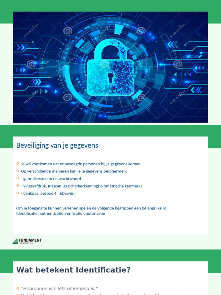 o Authenticatie is dus het middel dat we gebruiken om ons te kunnen identificeren.