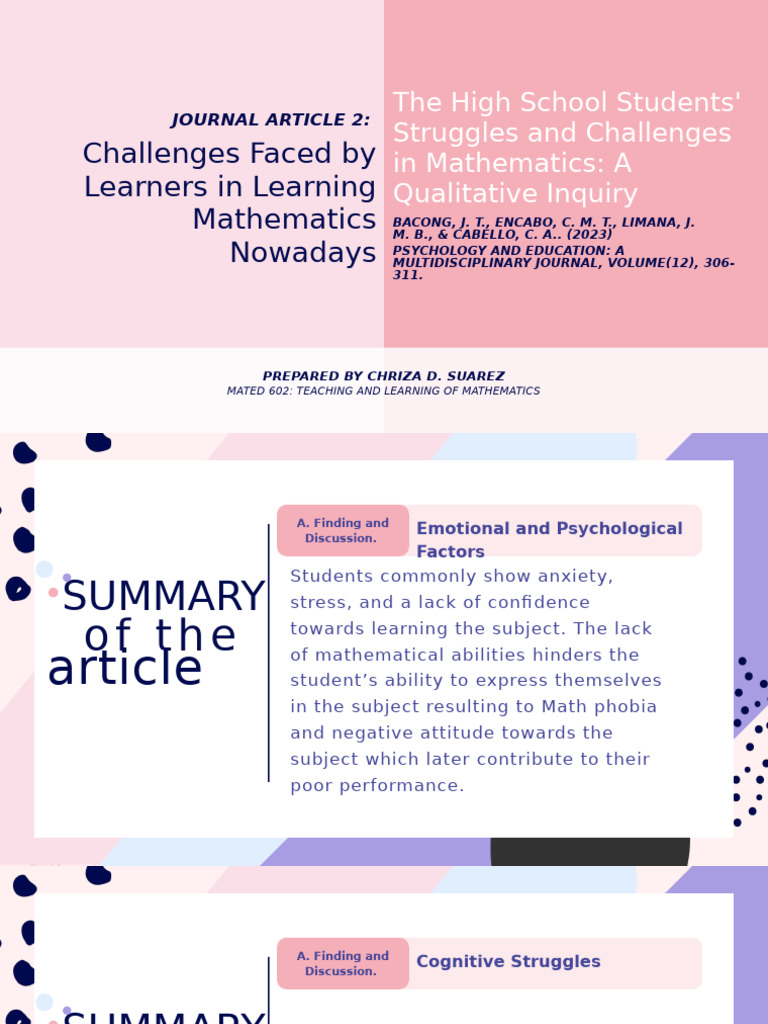 article of mathematical abilities hinders the