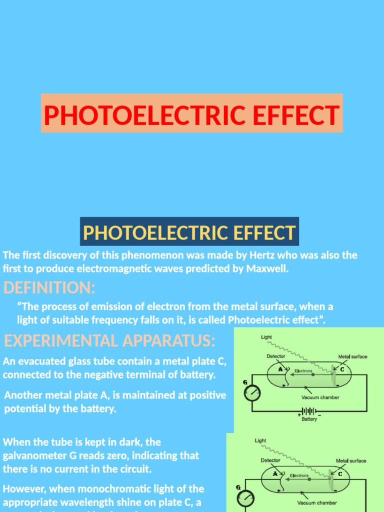light of suitable frequency falls on it, is called Photoelectric effect”.