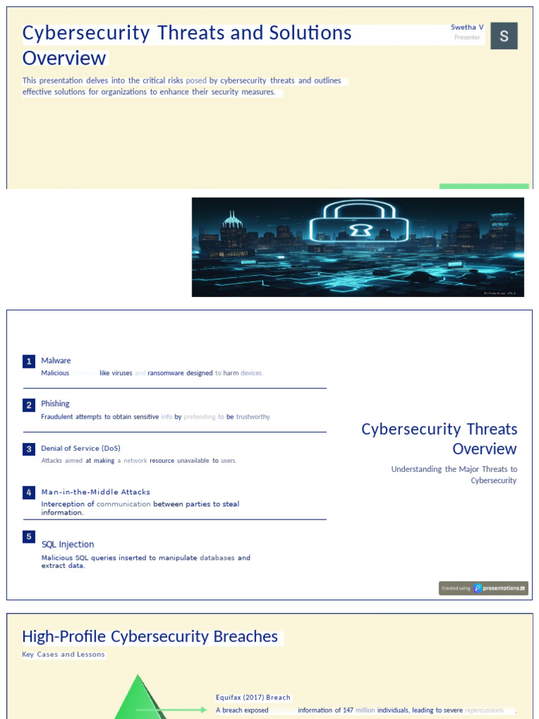 This presentation delves into the critical risks posed by cybersecurity threats and outlines