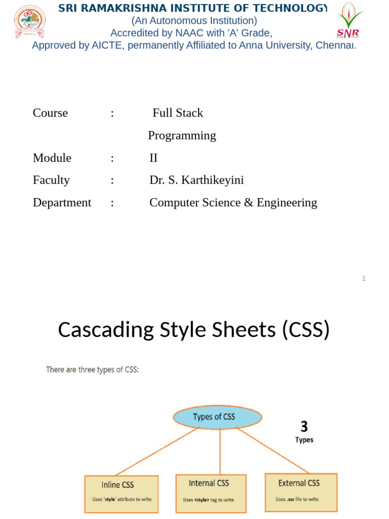 • Internal CSS is defined within the <style> tag in the <head> section of an HTML document .