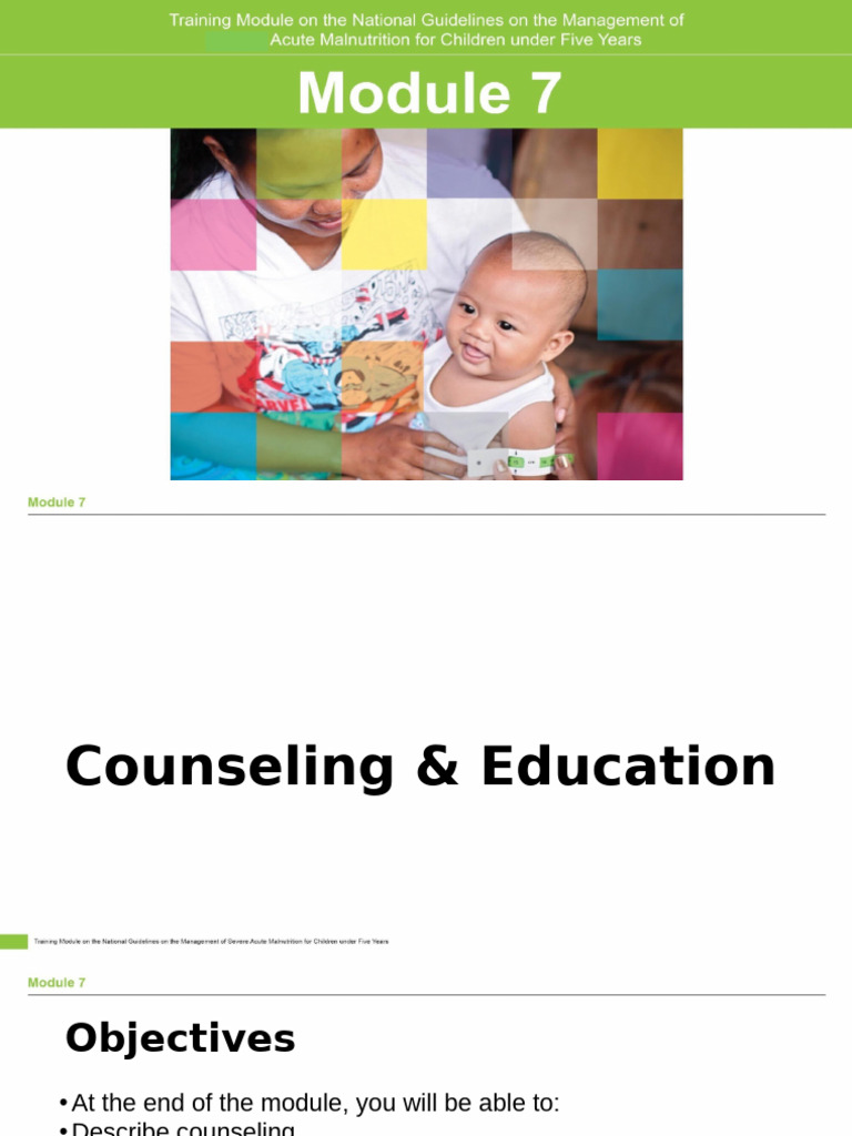 • Distinguish the stage of behavior change the mother/caregiver is in