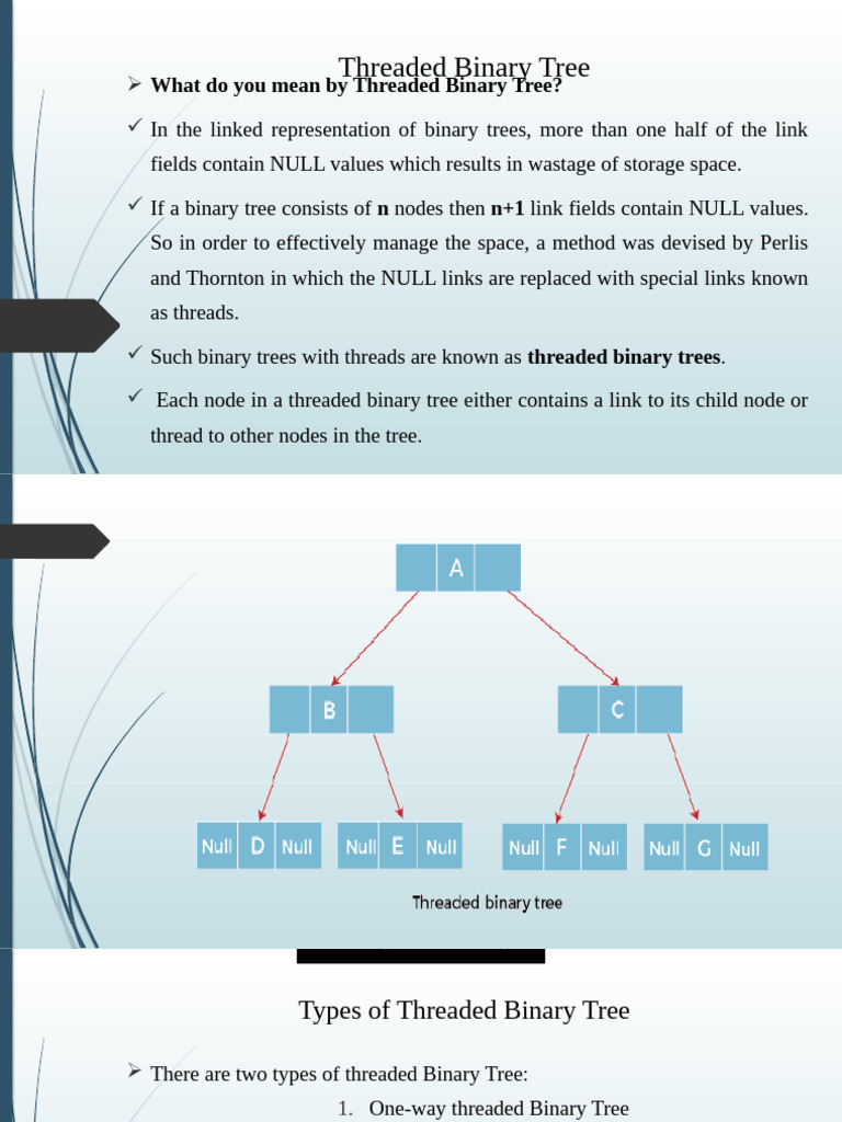 In the above figure of two-way threaded Binary tree, we noticed that no left thread is