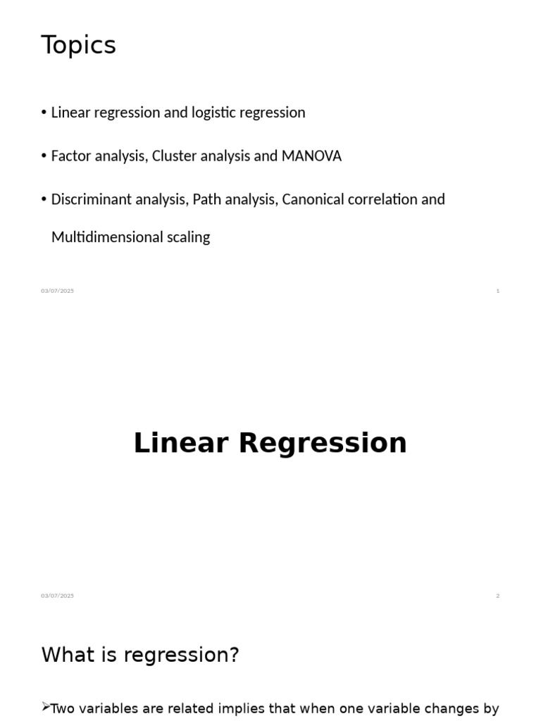 • Discriminant analysis, Path analysis, Canonical correlation and