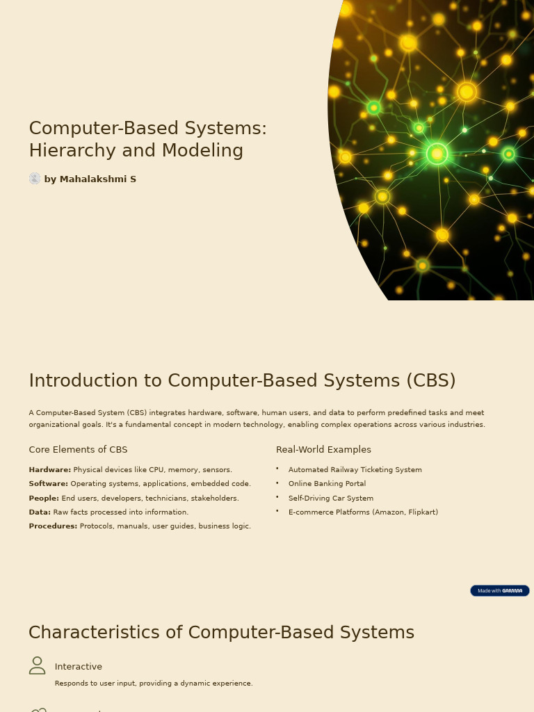 A Computer-Based System (CBS) integrates hardware, software, human users, and data to perform predefined tasks and meet