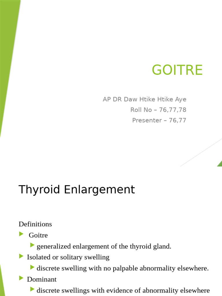 A colloid goitre is a late stage of diffuse hyperplastic goitre when