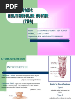 Necrotic lobules coalesce to form nodules filled either with colloid or a