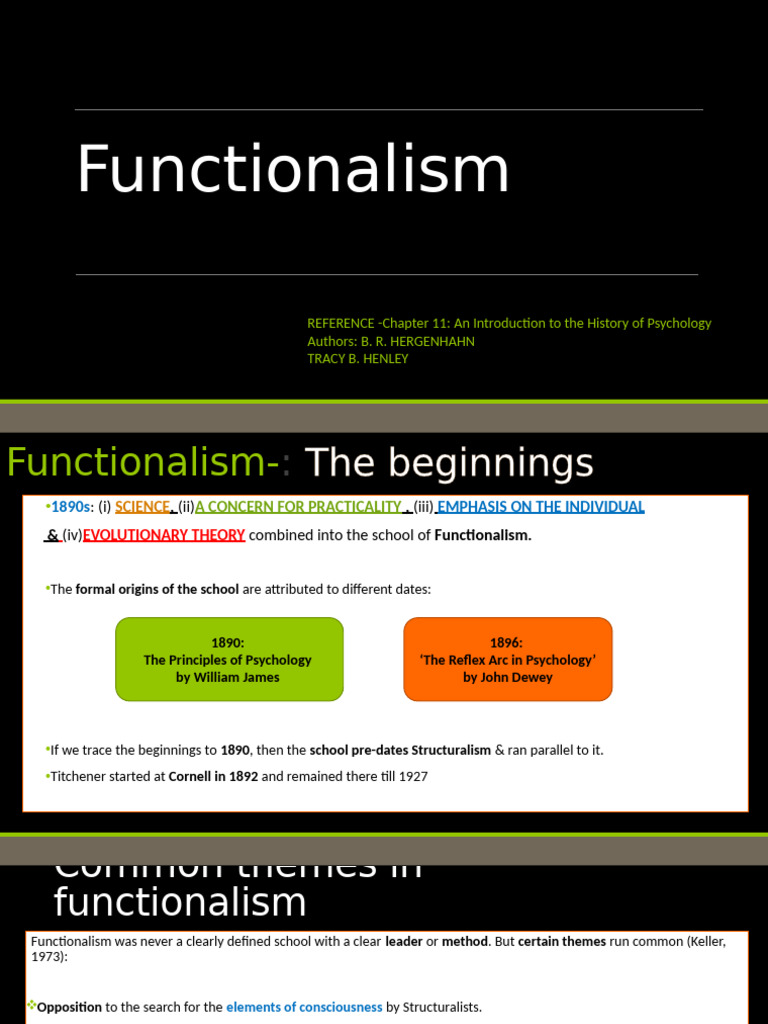 founding of functionalism. in 1890 by James’s Principles of Psychology.