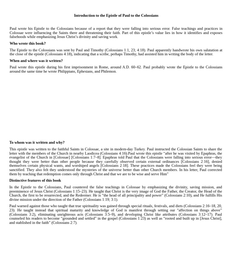 Colossae were influencing the Saints there and threatening their faith. Part of this epistle’s value lies in how it identifies and exposes