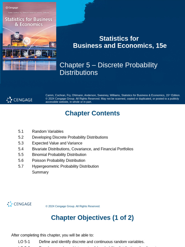 Camm, Cochran, Fry, Ohlmann, Anderson, Sweeney, Williams, Statistics for Business & Economics, 15 th Edition.