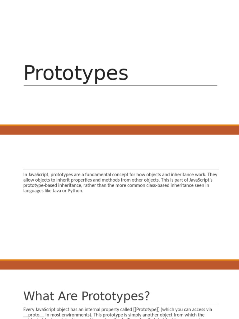 In JavaScript, prototypes are a fundamental concept for how objects and inheritance work. They
