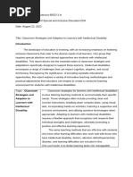 • Establish classroom routines • Modifying learning materials.