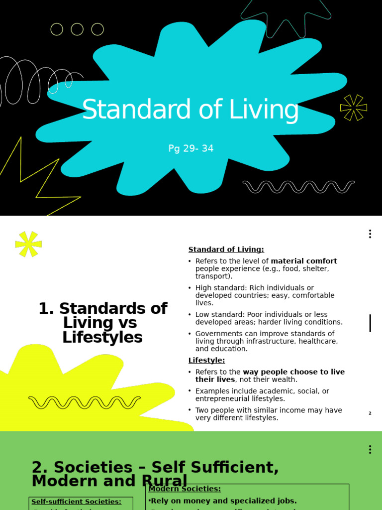 Self-sufficient Societies: •Rely on money and specialized jobs.