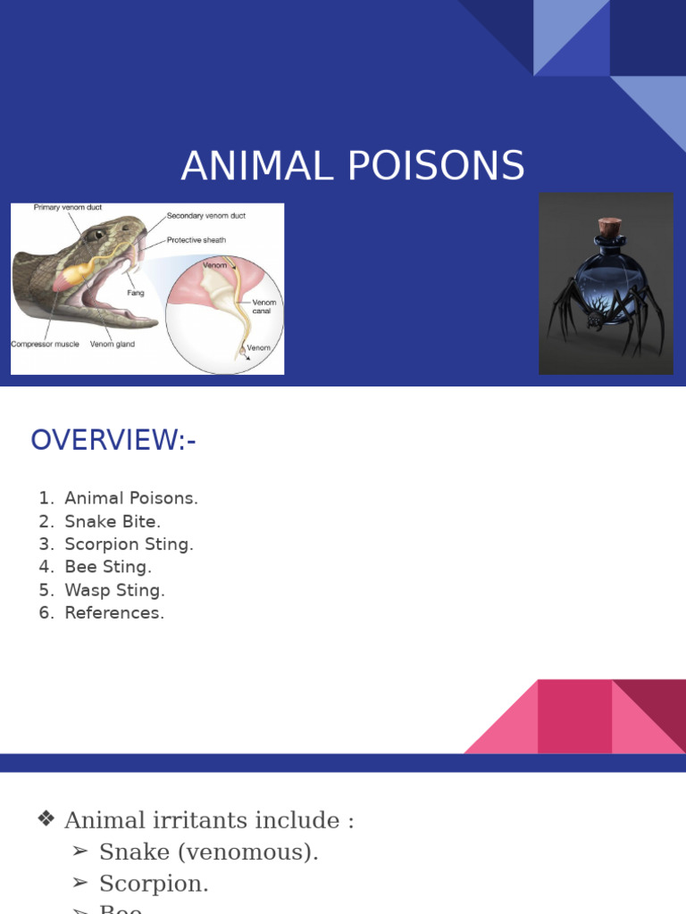 ● Fang marks. ● Pre-Paralytic stage - vomiting, headache,