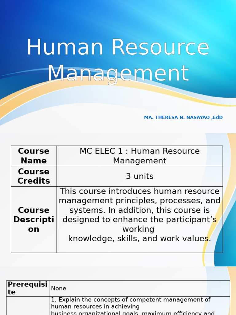 Course MC ELEC 1 : Human Resource
