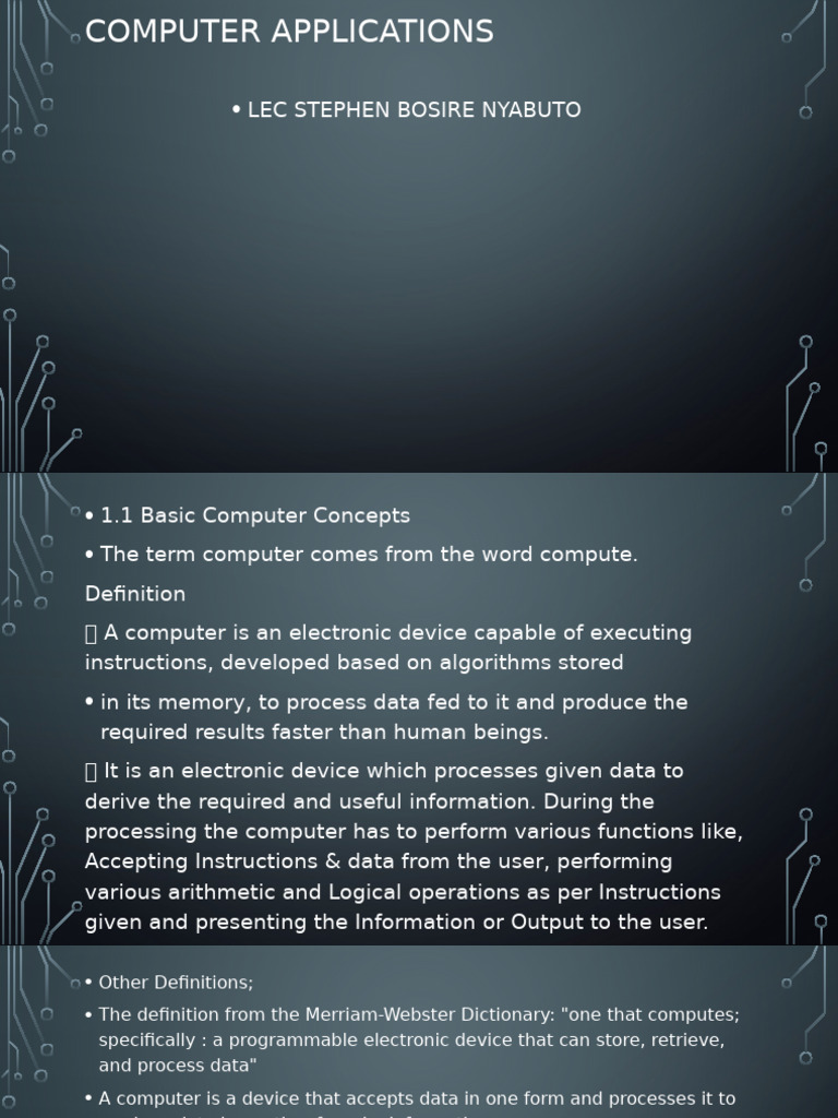 • The definition from the Merriam-Webster Dictionary: "one that computes;