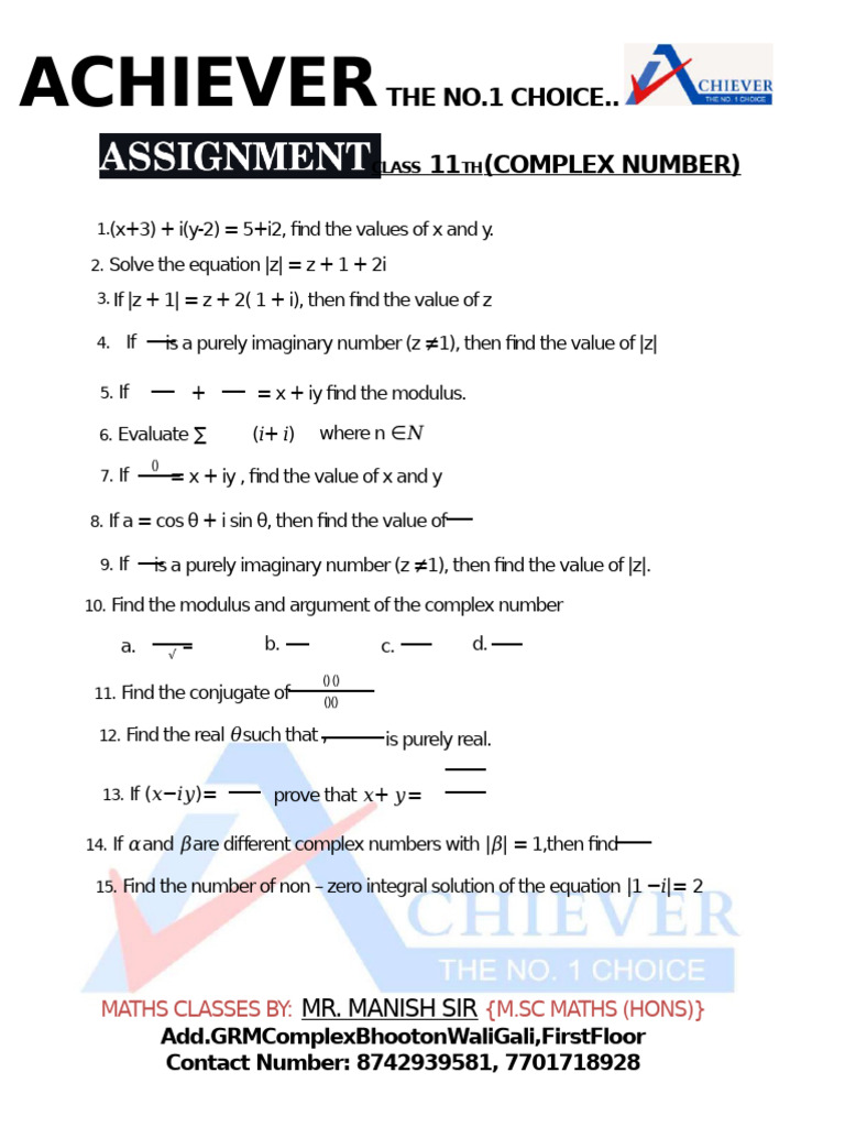 MATHS CLASSES BY: MR. MANISH SIR {[Link] MATHS (HONS)}