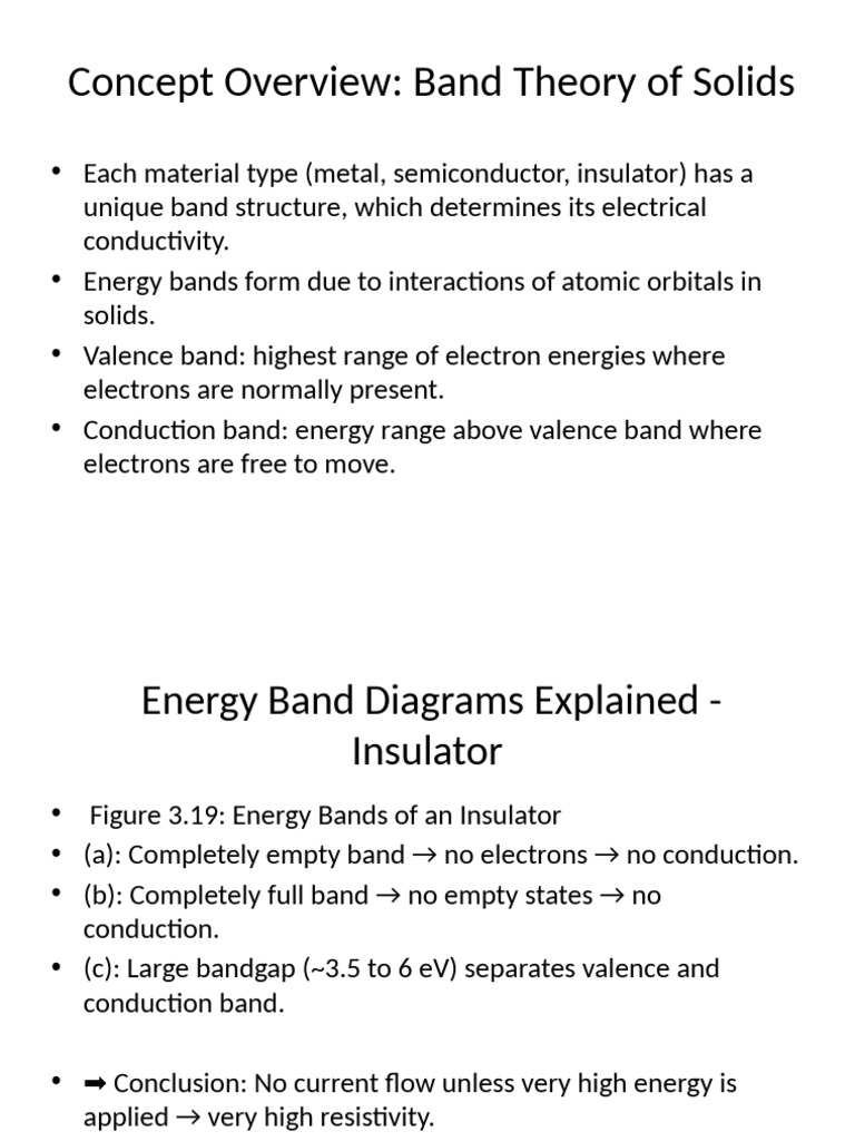• Metal Partially filled or overlapping bands = 0 or overlap