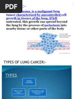 •Non-Small Cell Lung Cancer (NSCLC): This is the most common type, accounting for 80-85% of lung cancers. The main subtypes are adenocarcinoma, squamous cell carcinoma,