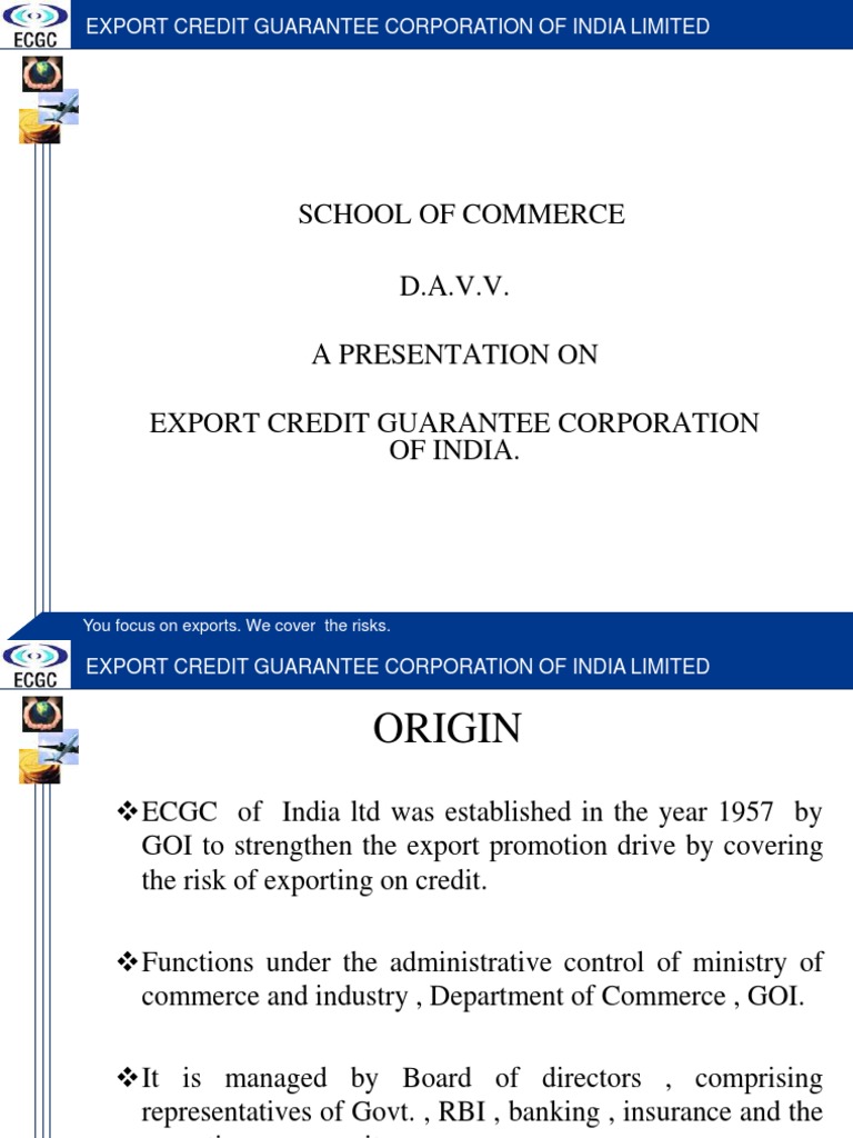 D.A.V.V. A PRESENTATION ON EXPORT CREDIT GUARANTEE CORPORATION OF INDIA.