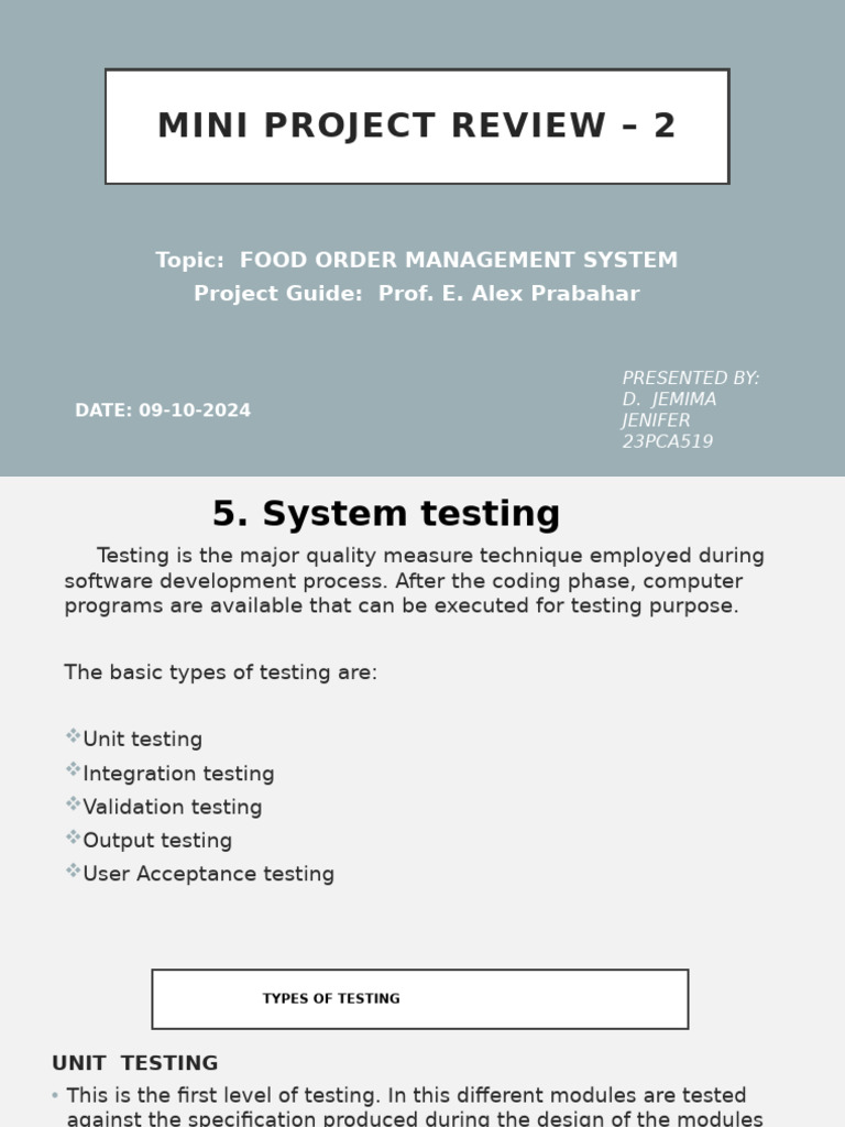 Topic: FOOD ORDER MANAGEMENT SYSTEM