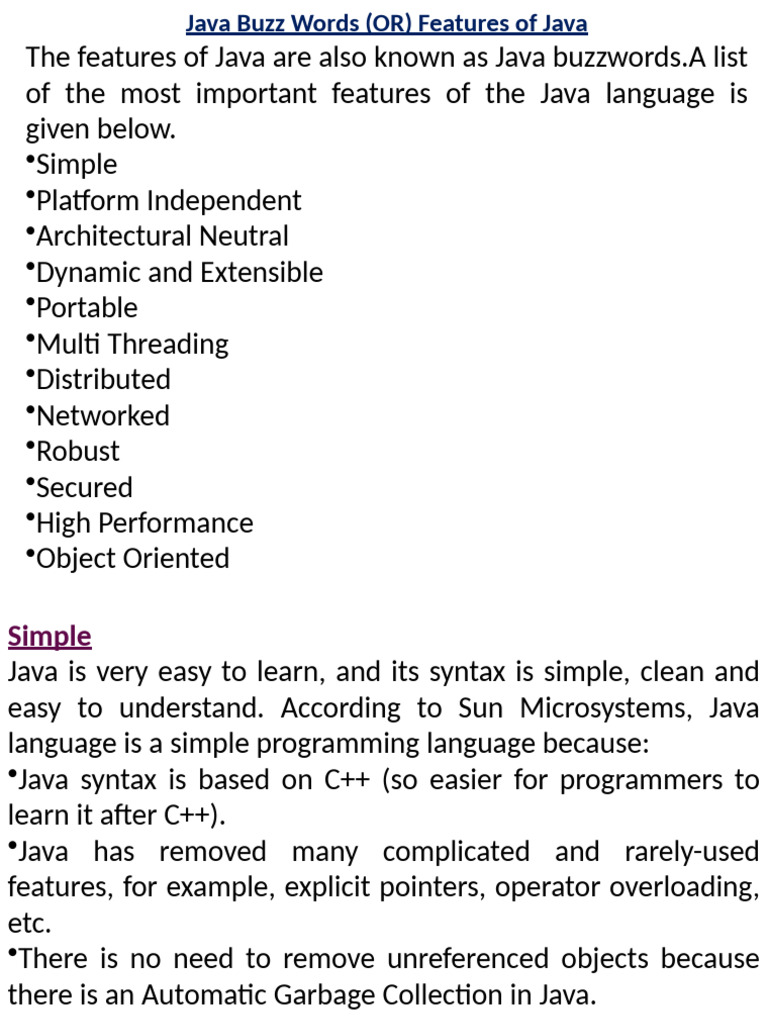Java Buzz Words (OR) Features of Java