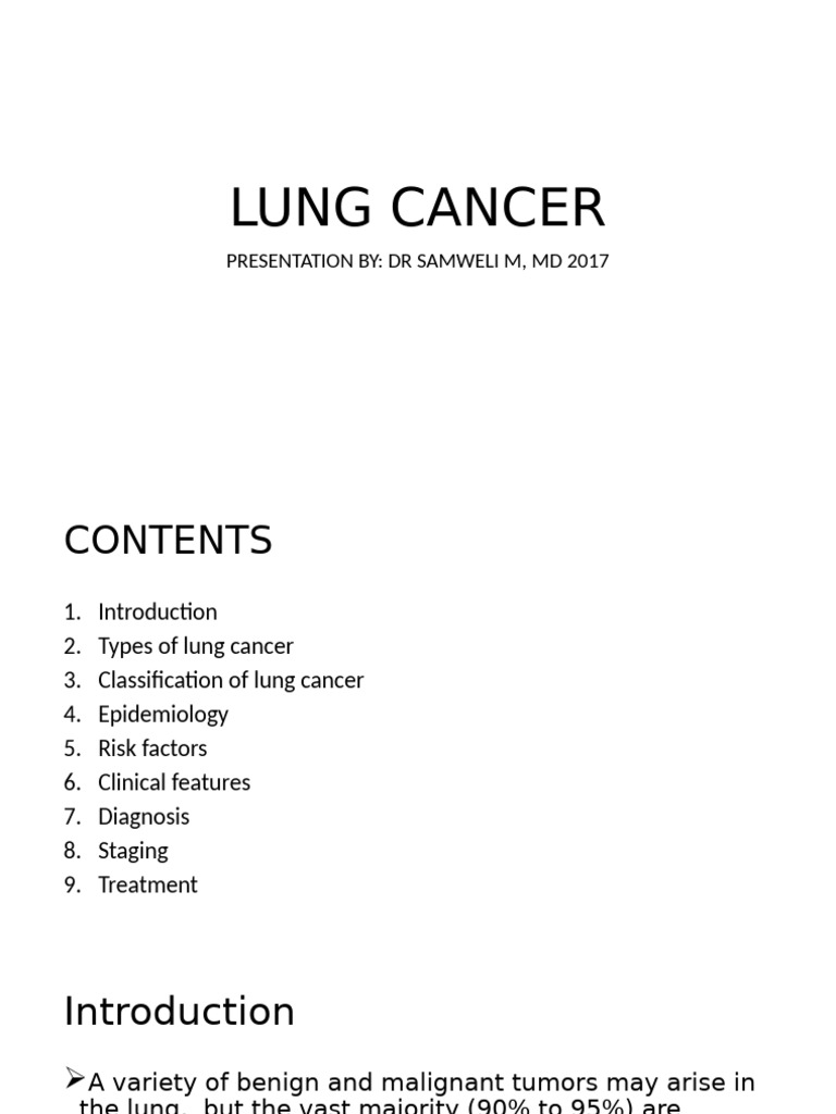 lung cancer, with guidance on symptoms and signs of potential lung