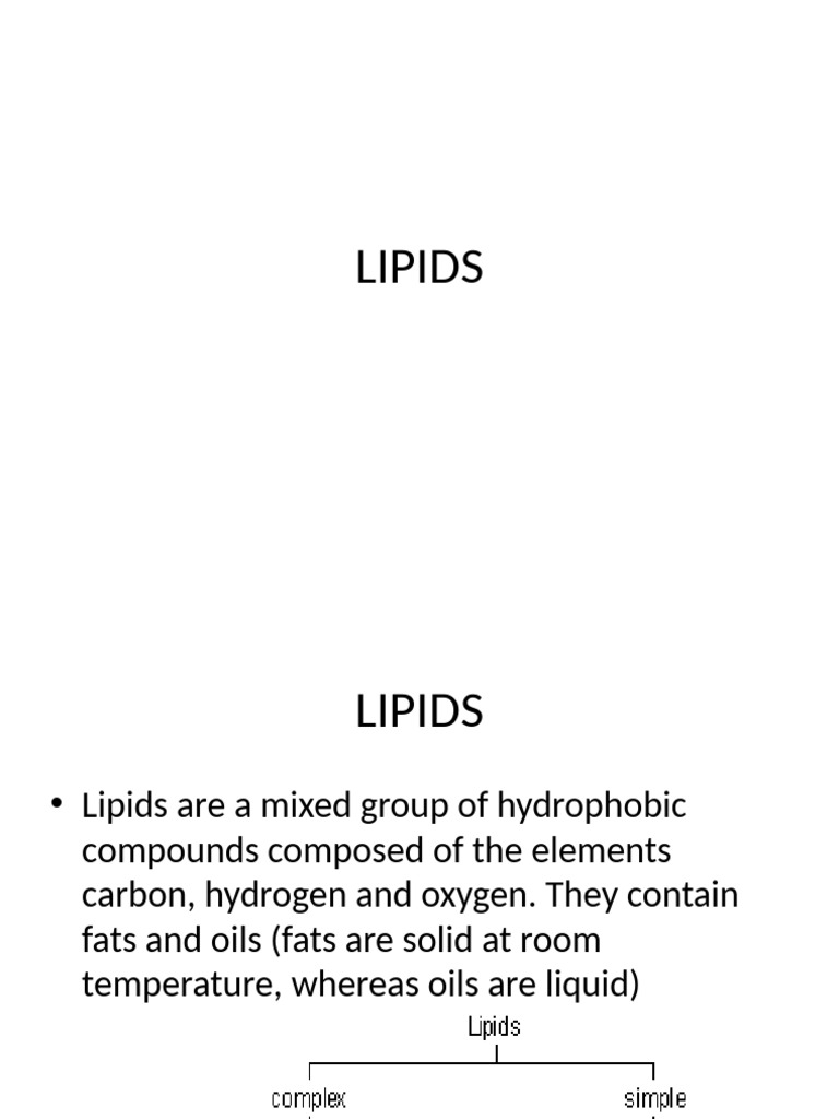 • Lipids are a mixed group of hydrophobic