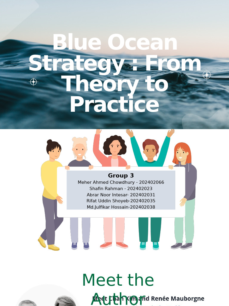 Blue ocean strategy offers As an integrated approach, blue ocean Blue ocean strategy is based Blue ocean strategy allows you to