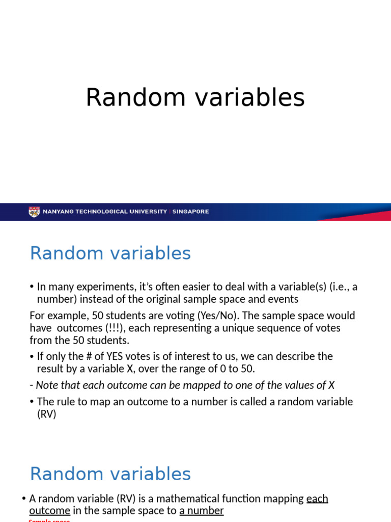 • A random variable (RV) is a mathematical function mapping each