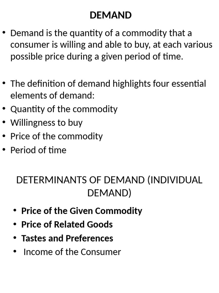 DETERMINANTS OF DEMAND (INDIVIDUAL