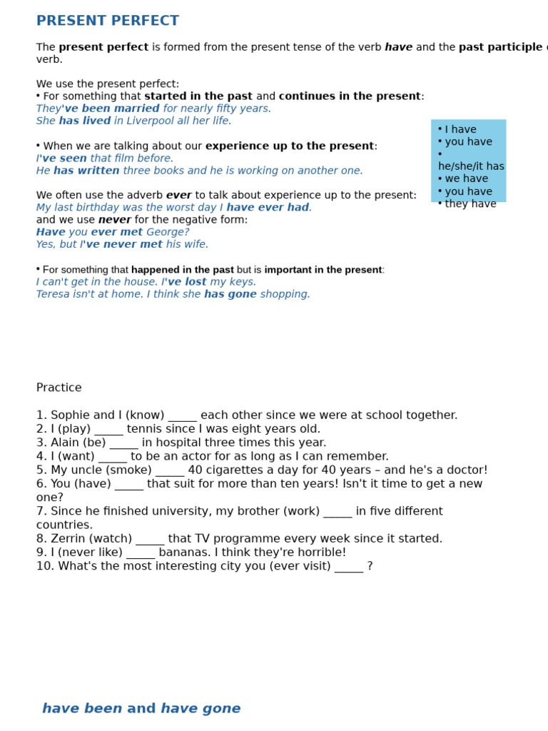 • When we are talking about our experience up to the present: • you have