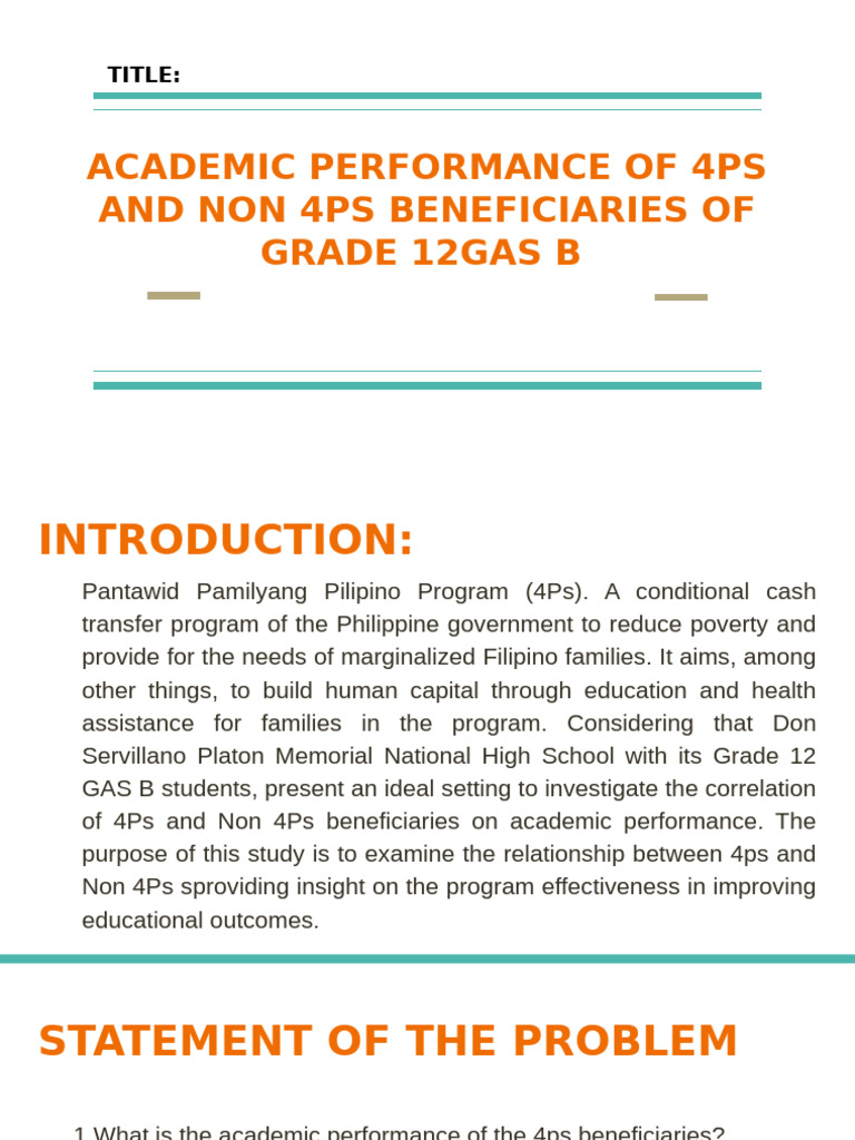 of 4Ps and Non 4Ps beneficiaries on academic performance. The