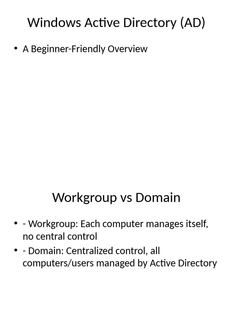 • - Workgroup vs Domain