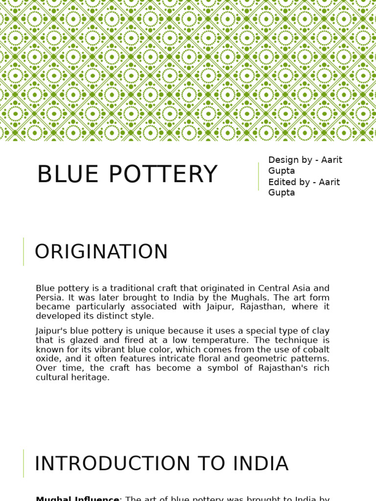 •Contemporary Blue Pottery: Today, Jaipur's blue pottery is a