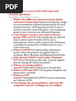 Group policies deal with account lockouts, passwords and Kerberos etc. Lockout: - Number of times a user can try to login before being locked out. Passwords: - Enforce password history, defines the number of passwords to be unique before a user can reuse an old password. (After how many days should a user change their password.) Kerberos: - Enforce user logon restrictions using Key Distribution Center (KDC. To view group policies: 1. Right Click the Domain object in Active Directory Users and Computers, then click on Properties. 2. Click on the Group Policy tab, and then click on the Edit button to show account policies.