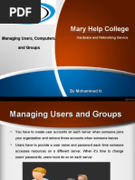 Group accounts help to minimize the administrative effort associated with assigning rights and permissions to users with common needs. You have two different types in Windows Server 2003 1) Security Groups q A Security Identifier (SID) that allows groups assigned permissions to resources as well as rights to perform various tasks defines this group. 2) Distribution Groups q Are used when sending an e-mail to a group, which then sends it to all members of that group.