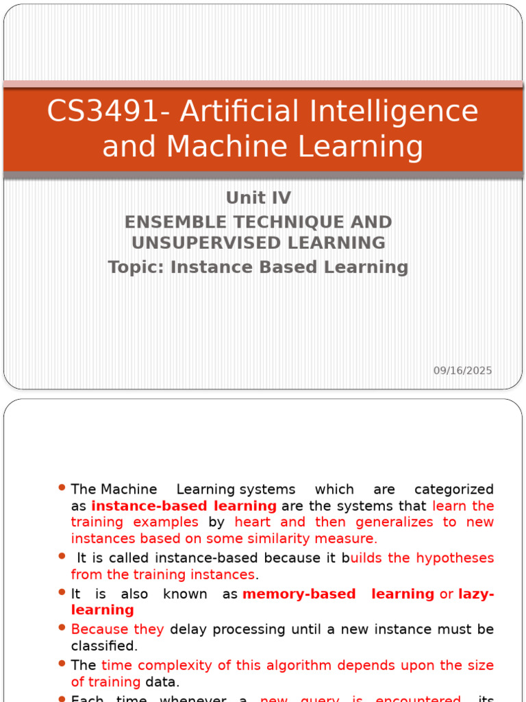 Topic: Instance Based Learning