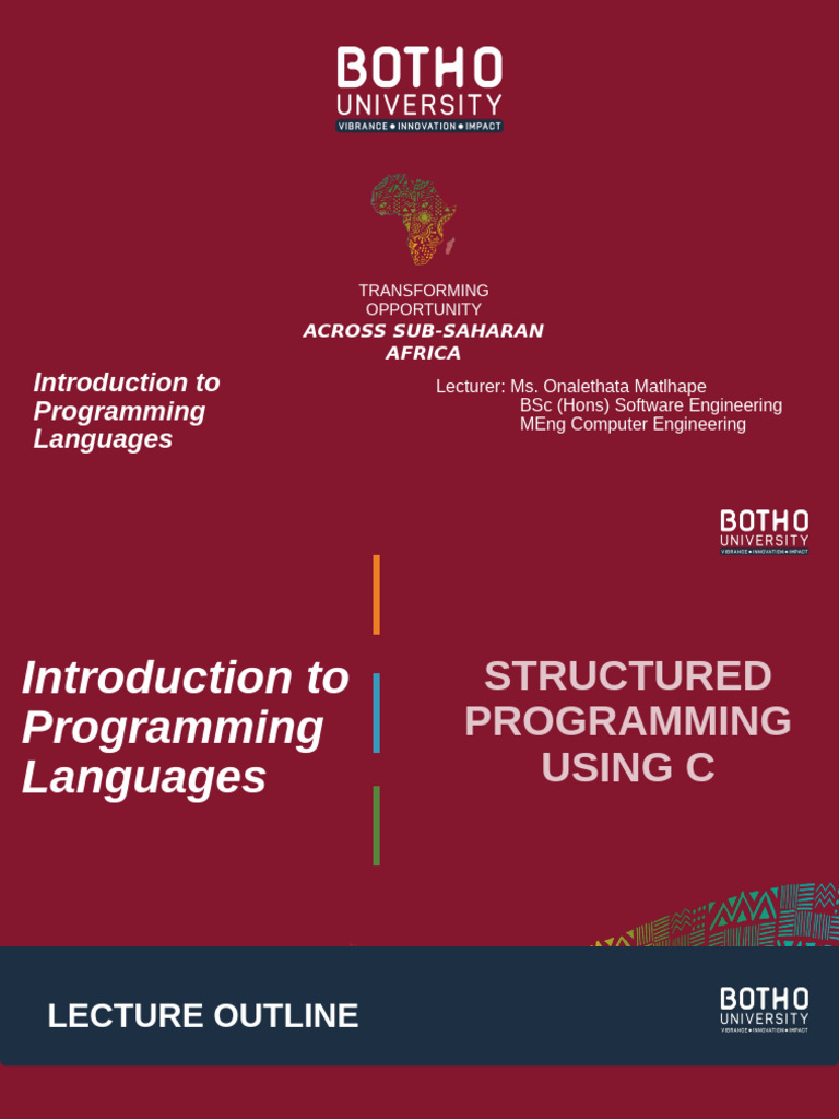 Introduction to Lecturer: Ms. Onalethata Matlhape
