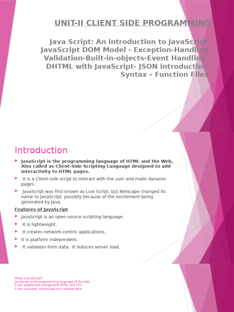 JavaScript is a scripting language which is done on a client-side. The various
