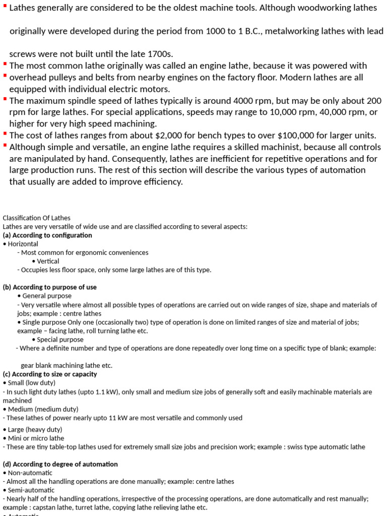 - These lathes of power nearly upto 11 kW are most versatile and commonly used