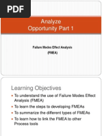 Who should do FMEA? Cross Functional Team Effort with a leader Team of knowledgeable individuals Ex. Expertise in Design, Mfg., Assly, Quality. Etc. Team should include representatives of sub-contractors and/or customers