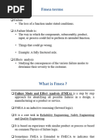 What is FMEA? FMEA is a systemised group of activities to: Recognise and evaluate the potential failure of a product / process and its effects Identify actions which could eliminate or reduce the chance of potential failure occurring Document the process