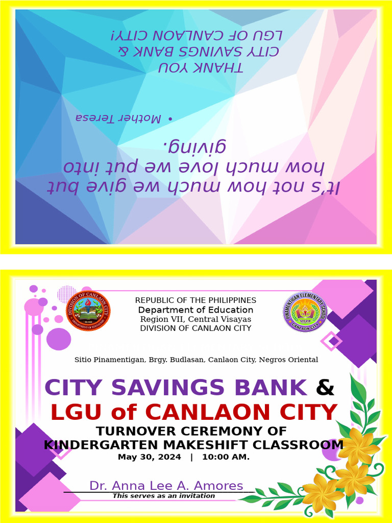 VII. CSB Turnover Ceremony of Kindergarten Makeshift Classroom …………