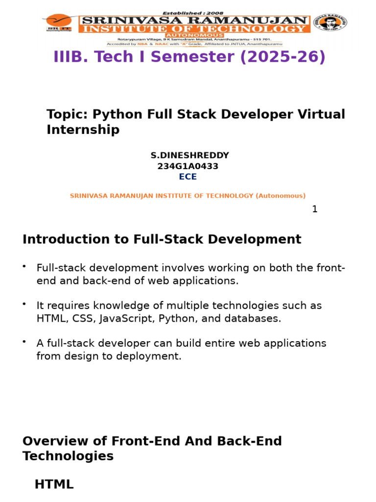 Topic: Python Full Stack Developer Virtual