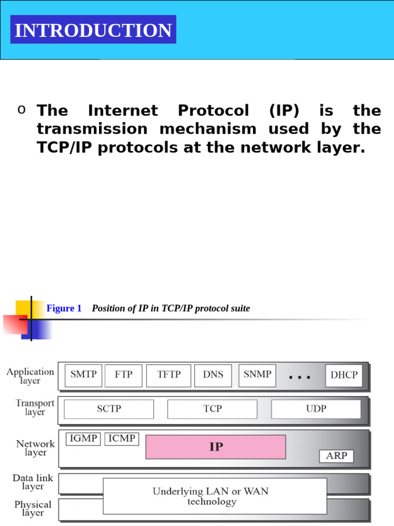 o The Internet Protocol (IP) is the