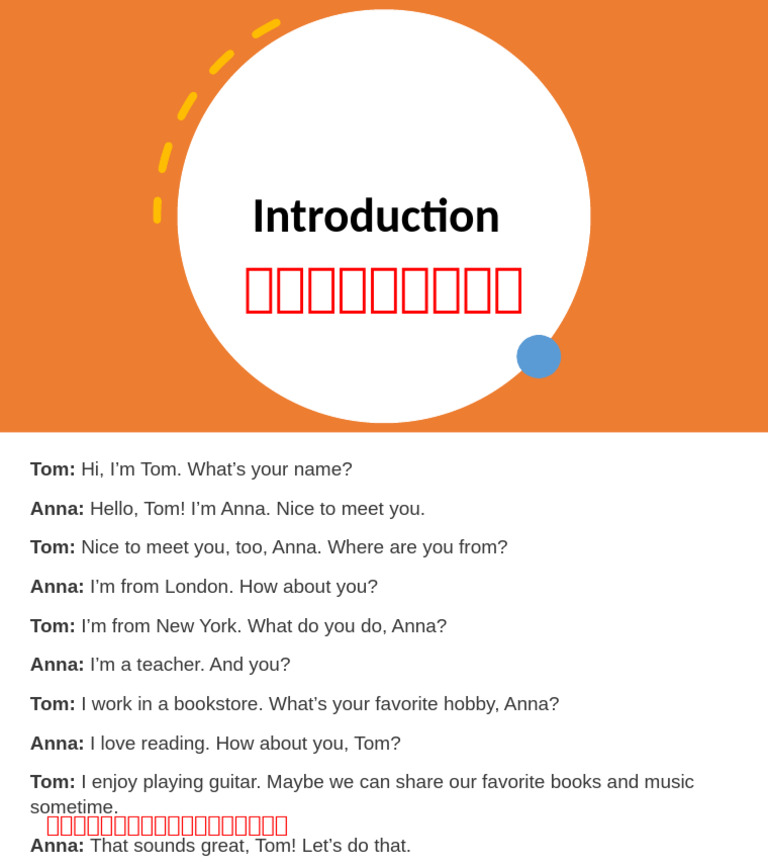 Anna: Hello, Tom! I’m Anna. Nice to meet you.